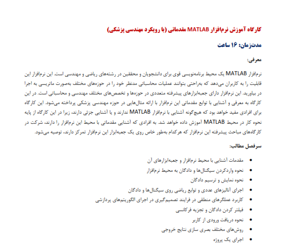 آموزش نرم افزار متلب با رویکرد مهندسی پزشکی