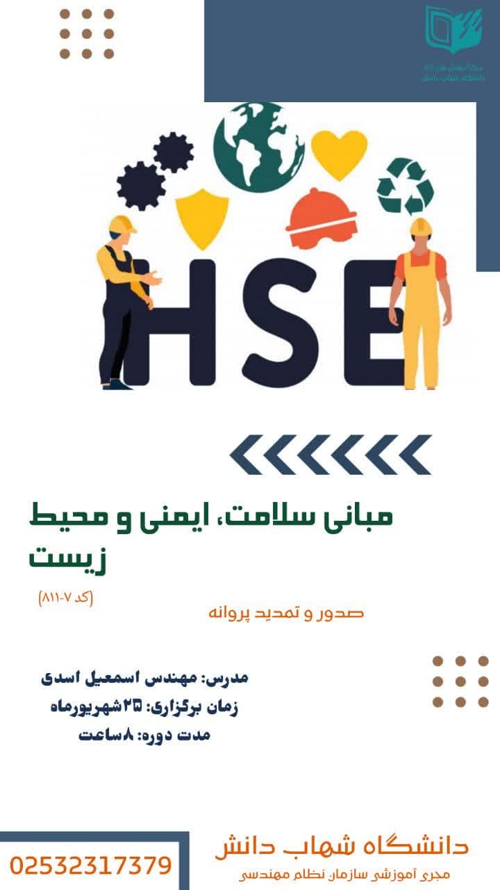 مبانی سلامت، ایمنی و محیط زیست (HSE) (تمدید پروانه)