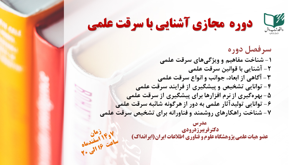 دوره جامع آشنایی با سرقت علمی (ویژه اعضای هیات علمی دانشگاه شهاب دانش)